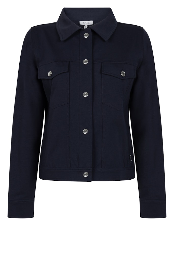 Jacket van Zoso met lange mouwen, kraag, knoopsluiting en twee klepzakken op de borst. Materiaal: Katoen 52%| elastan 6%