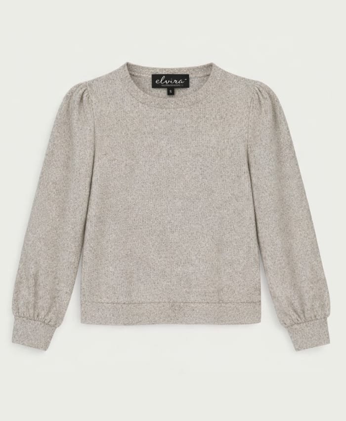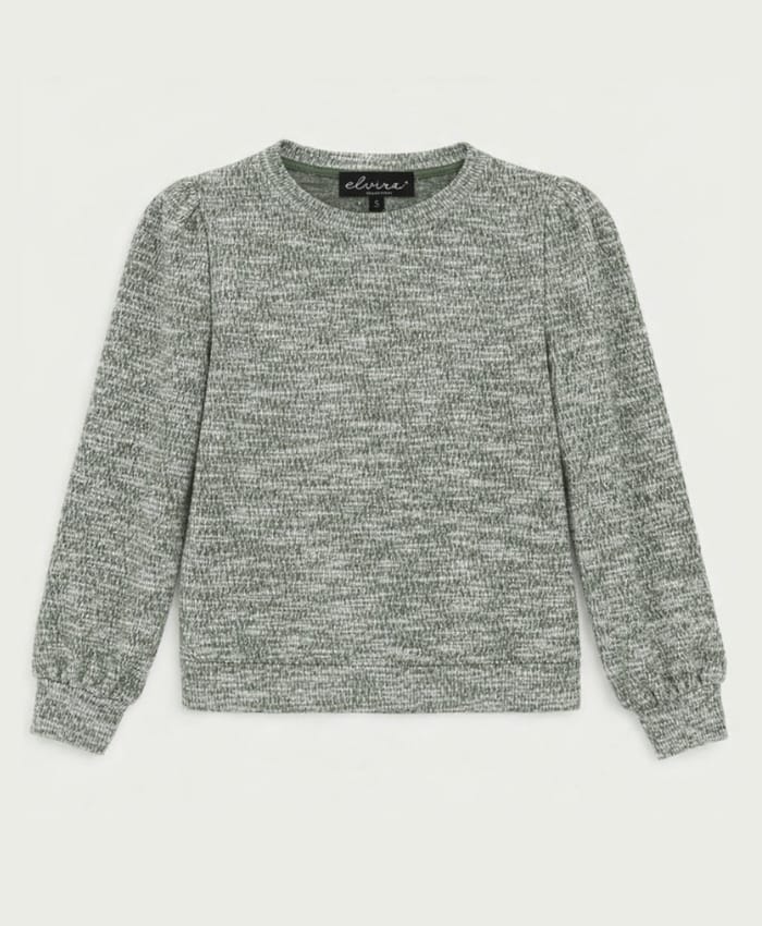 Gemêleerde sweater van Elvira met lange mouwen, plooien bij de schouders en een ronde hals. Materiaal: Viscose 47%| katoen 46%| metallic 7%