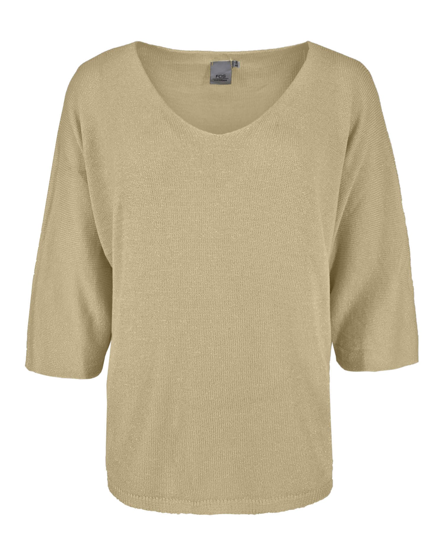 Lurex trui van FOS Amsterdam met driekwart mouwen, loose-fit en V-hals. Materiaal: Viscose 80%| polyester 20%
