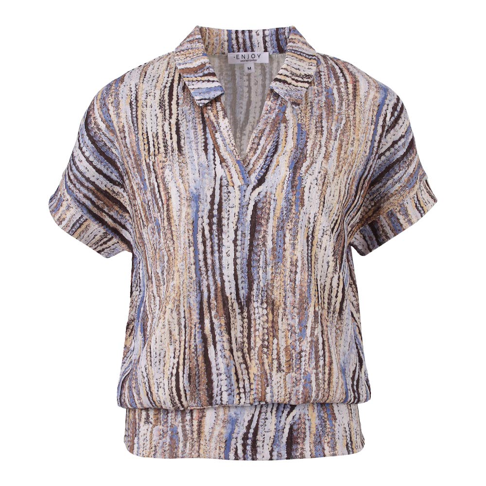 Shirt van Enjoy in een all-over met korte aangeknipte mouwen voorzien van omslag, kraag, V-hals en een boord aan de onderzijde.
