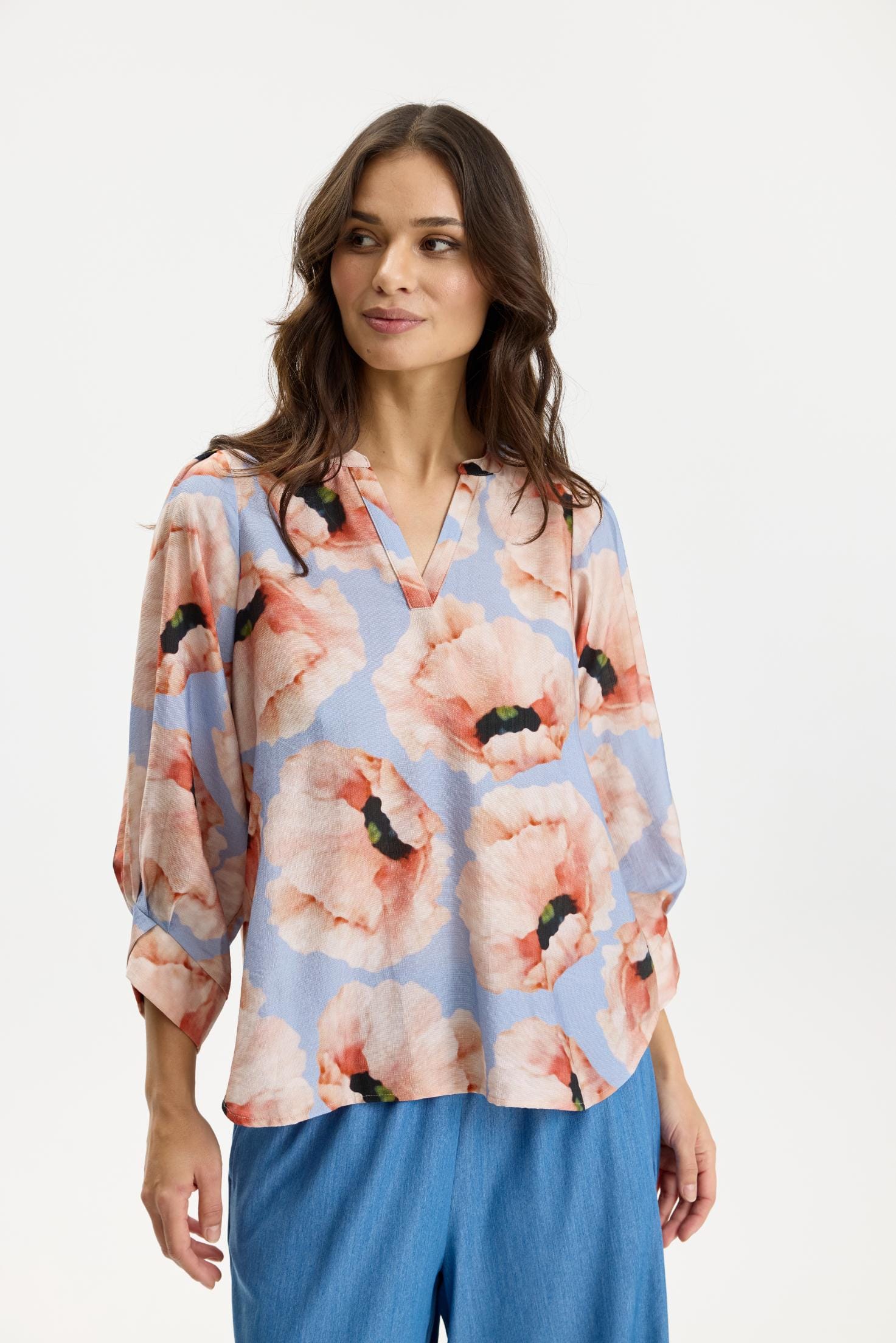 Blouse van In Front in een bloemen dessin met driekwart pofmouwen, V-hals en een afgeronde zoom. Materiaal: Viscose 80%| nylon 20%