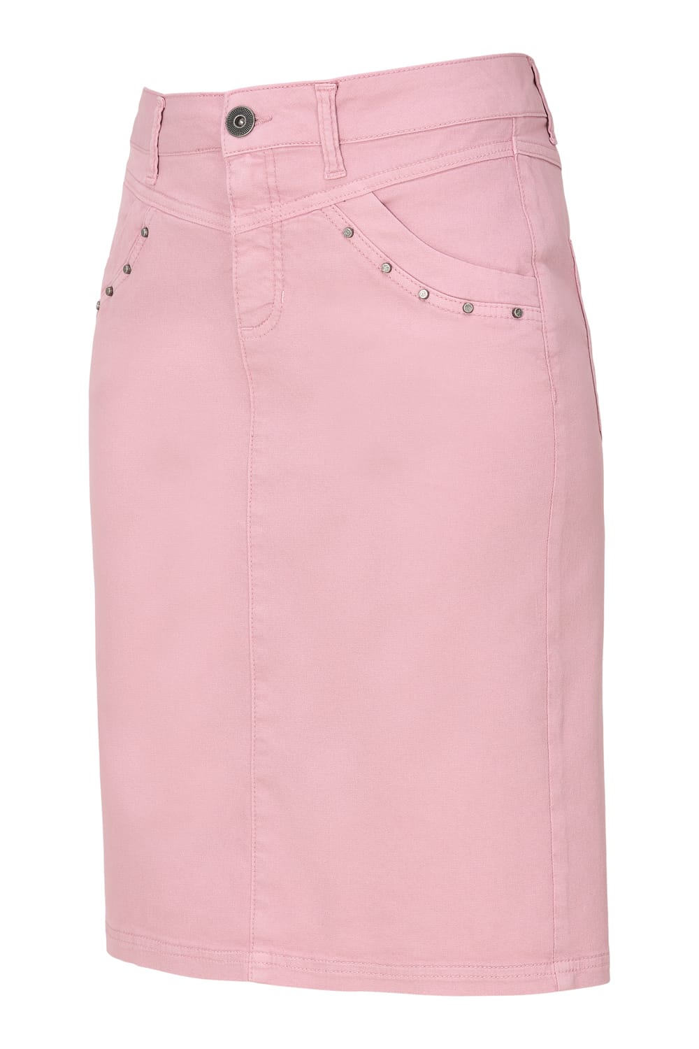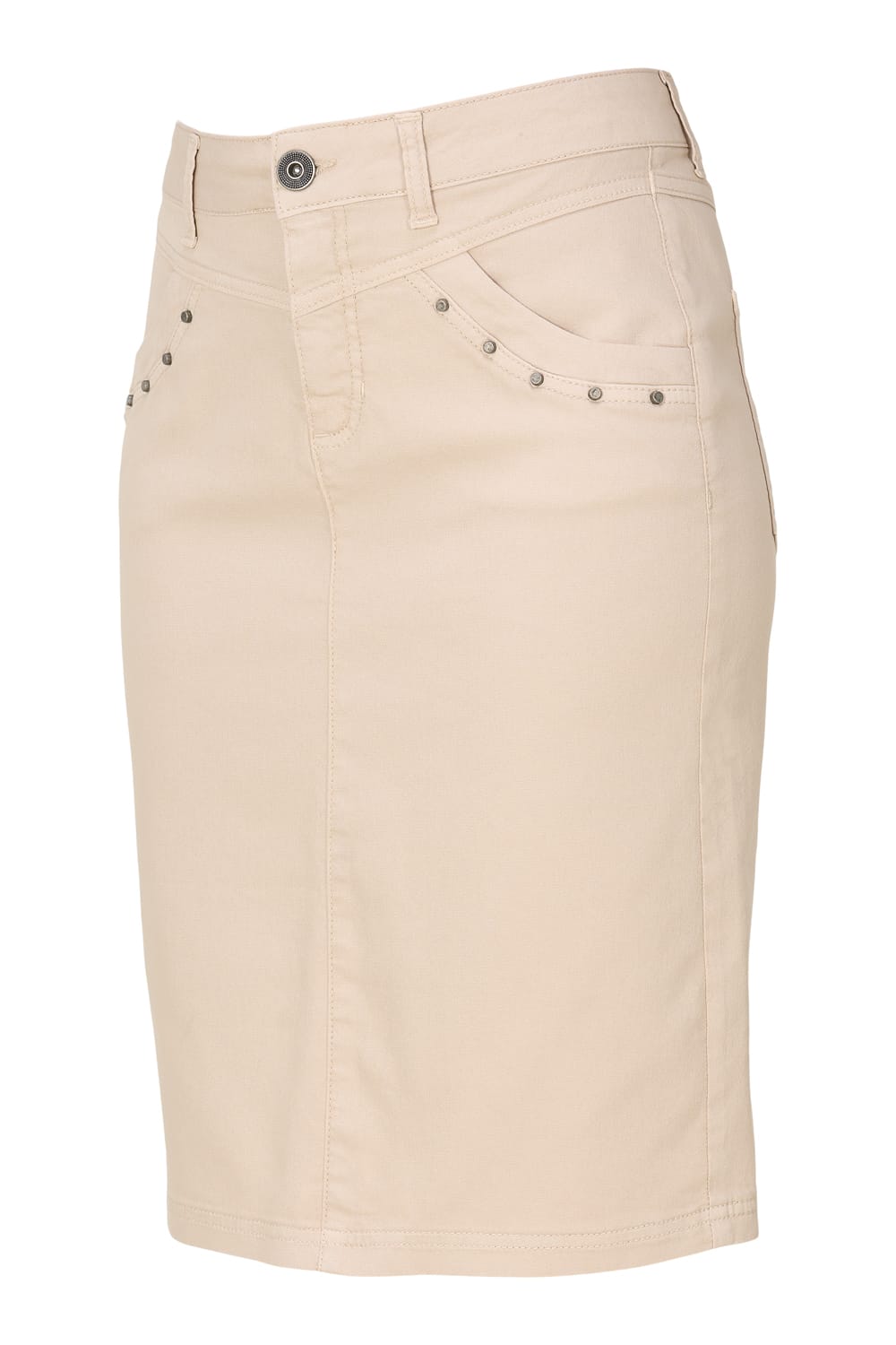 Rok van Dreamstar met een knoop- en ritssluiting, steekzakken voorzien van studs en opgestikte achterzakken.
