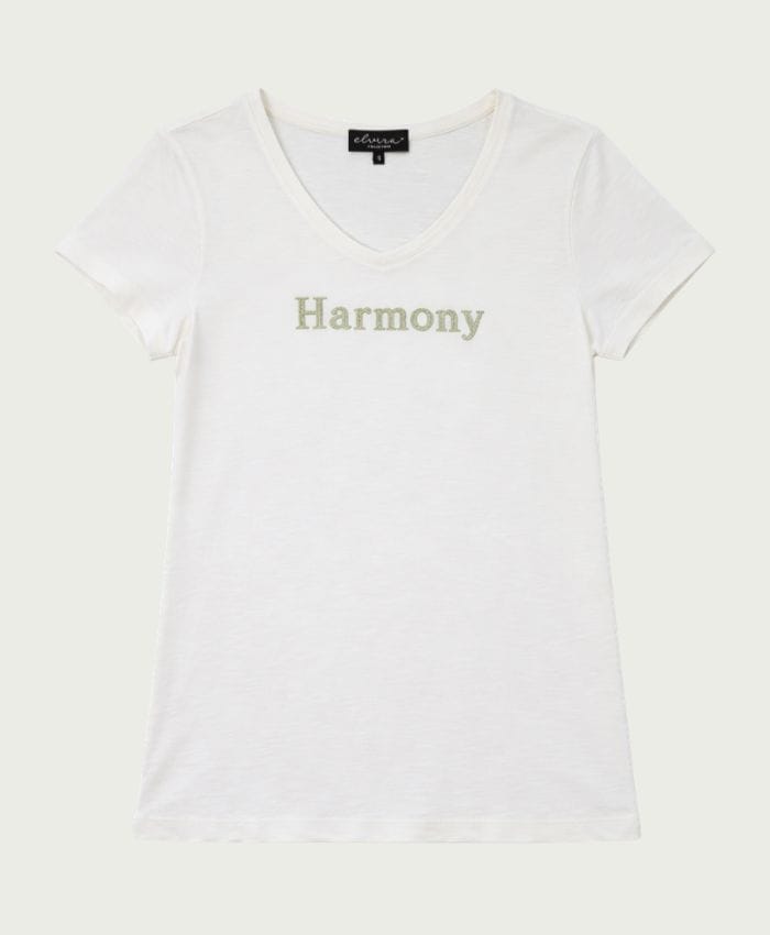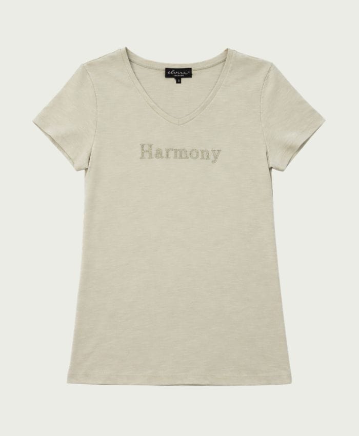 T-shirt van Elvira met korte mouwen, V-hals en een tekstprint op de borst. Materiaal: Katoen 50%| modal 50%