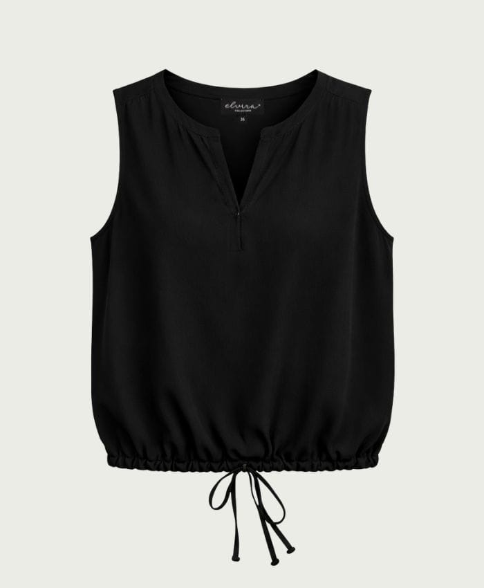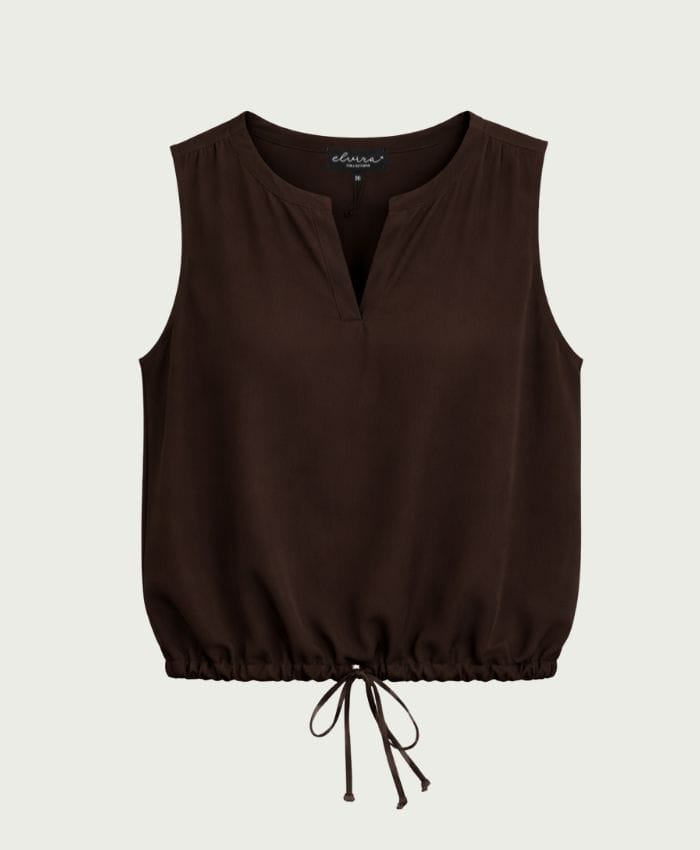 Mouwloze top van Elvira met een ronde hals voorzien van V-inkeping en een trekkoord in de zoom. Materiaal: Viscose 100%