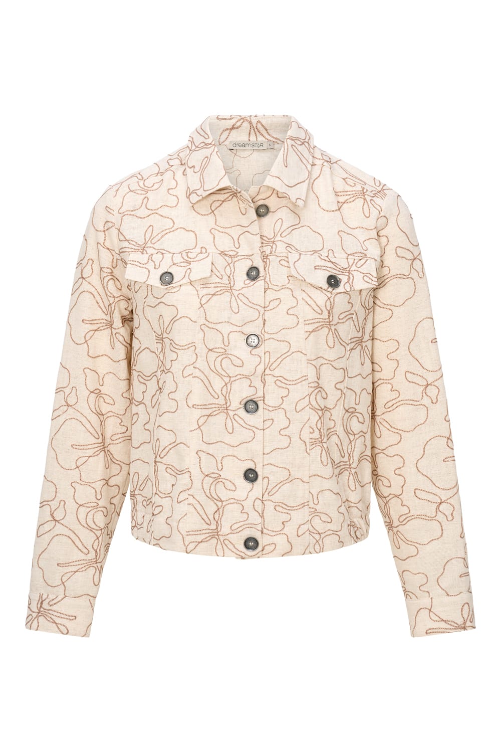 Jacket van Dreamstar in een all-over dessin met lange mouwen, kraag, knoopsluiting en twee klepzakken op de borst. Materiaal: Katoen 100%