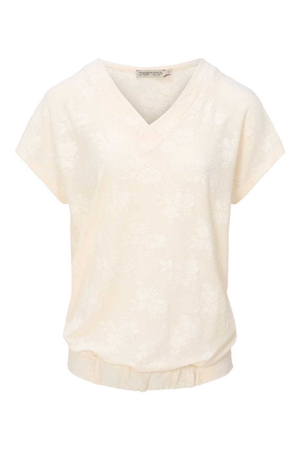 Top van Dreamstar in een structuur dessin met korte mouwen, V-hals en een elastische tailleband. Materiaal: Polyester 98%| elastan 2%