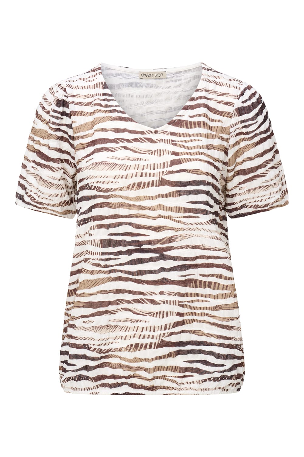 Top van Dreamstar in een zebra dessin met korte mouwen, V-hals en een elastische zoom. Materiaal: Polyester 96%| elastan 4%