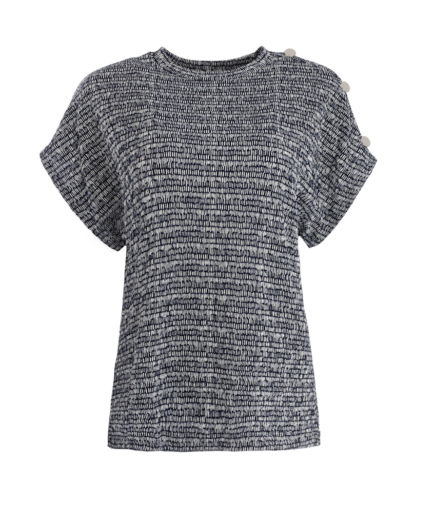 Shirt van N.E.D. in een structuur dessin met een ronde hals, knopendetail op de linkerschouder en korte aangeknipte mouwen.