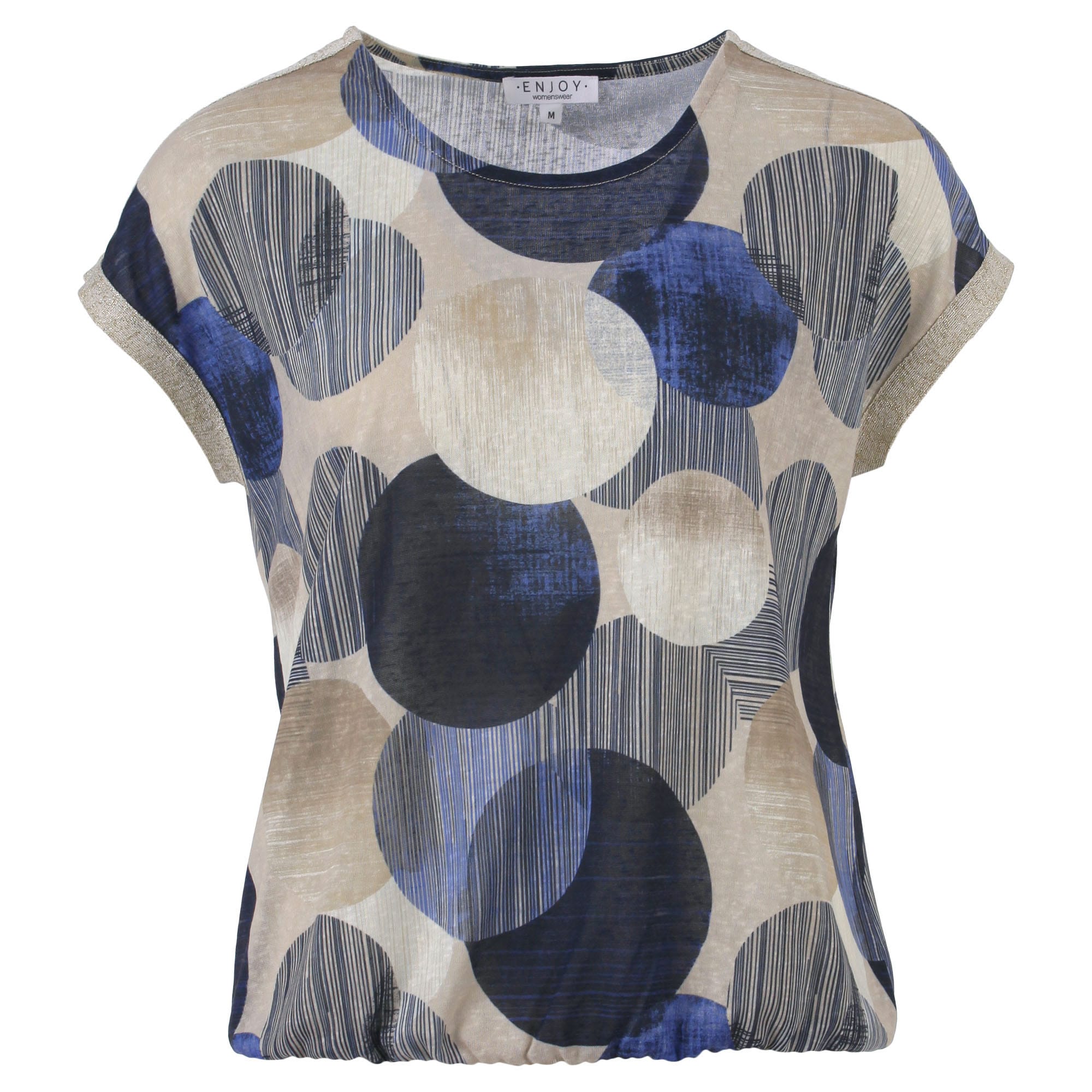 Blouson van Enjoy in een all-over dessin met korte mouwen voorzien van glitterboord, ronde hals en elastische zoom.