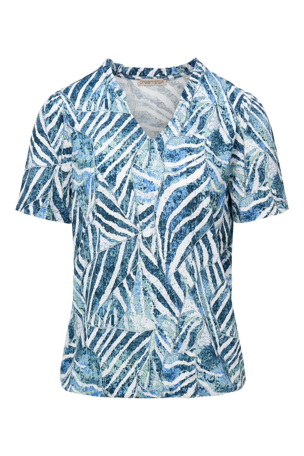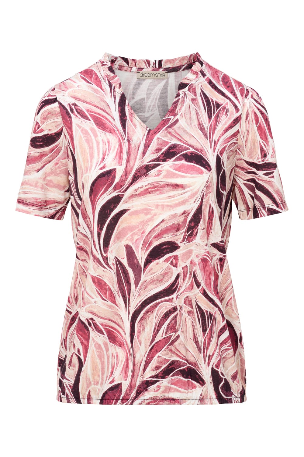 Blouson van Dreamstar in een all-over dessin met korte mouwen, V-hals en een elastische zoom. Materiaal: Katoen 50%| modal 50%