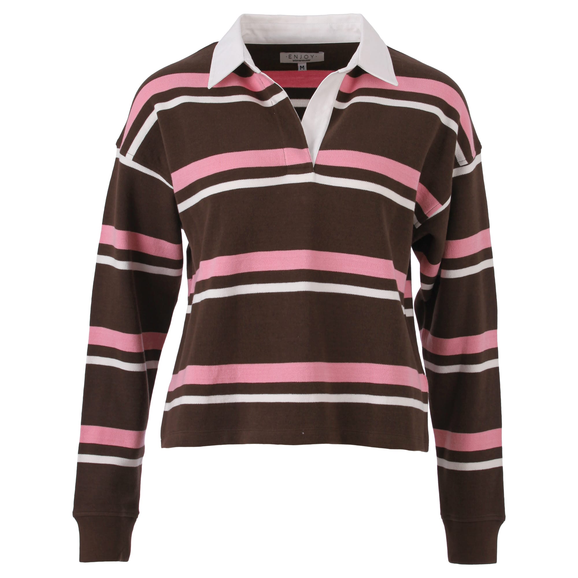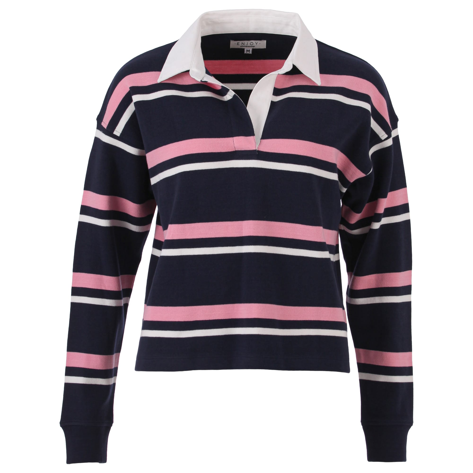Gestreept shirt van Enjoy met lange mouwen voorzien van elastische manchetten, verlaagde schoudernaden en een polokraag voorzien van een V-hals.