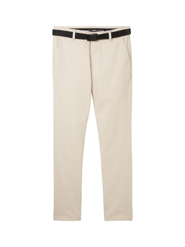 Slim fit Chino van Tom Tailor met twee steekzakken, knoop- en ritssluiting en een ceintuur. Materiaal: Katoen 75%| polyester 22%| elastan 3%