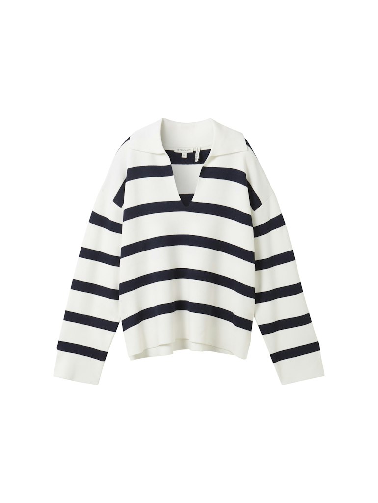Gestreepte trui van Tom Tailor met lange mouwen en een kraag voorzien van V-inkeping. Materiaal: Viscose 85%| polyamide 15%