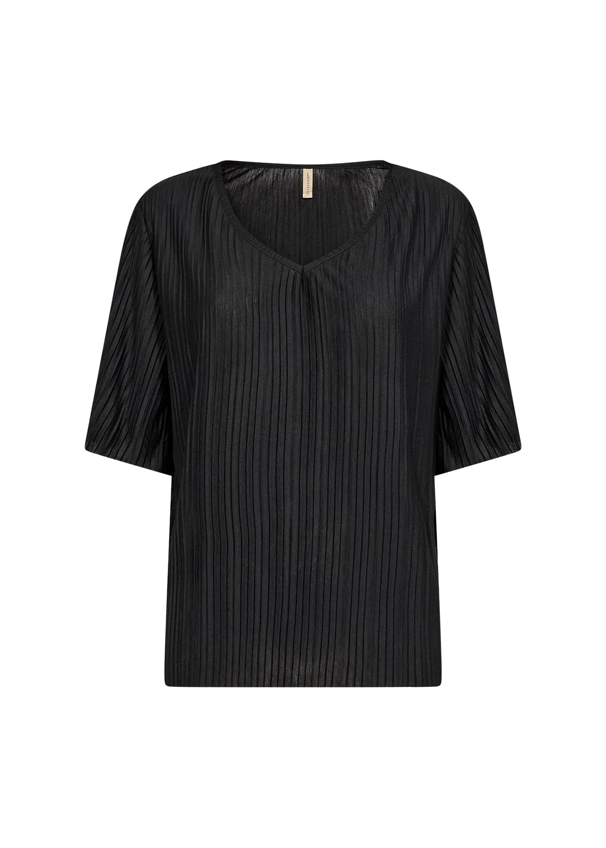Shirt van Soya Concept in een streep structuur met halflange mouwen en een V-hals. Materiaal: Gerecycled polyester 65%| viscose 35%