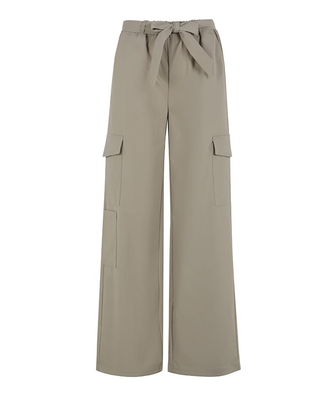 Cargo broek van Elvira met twee steekzakken en een strikceintuur in de taille.