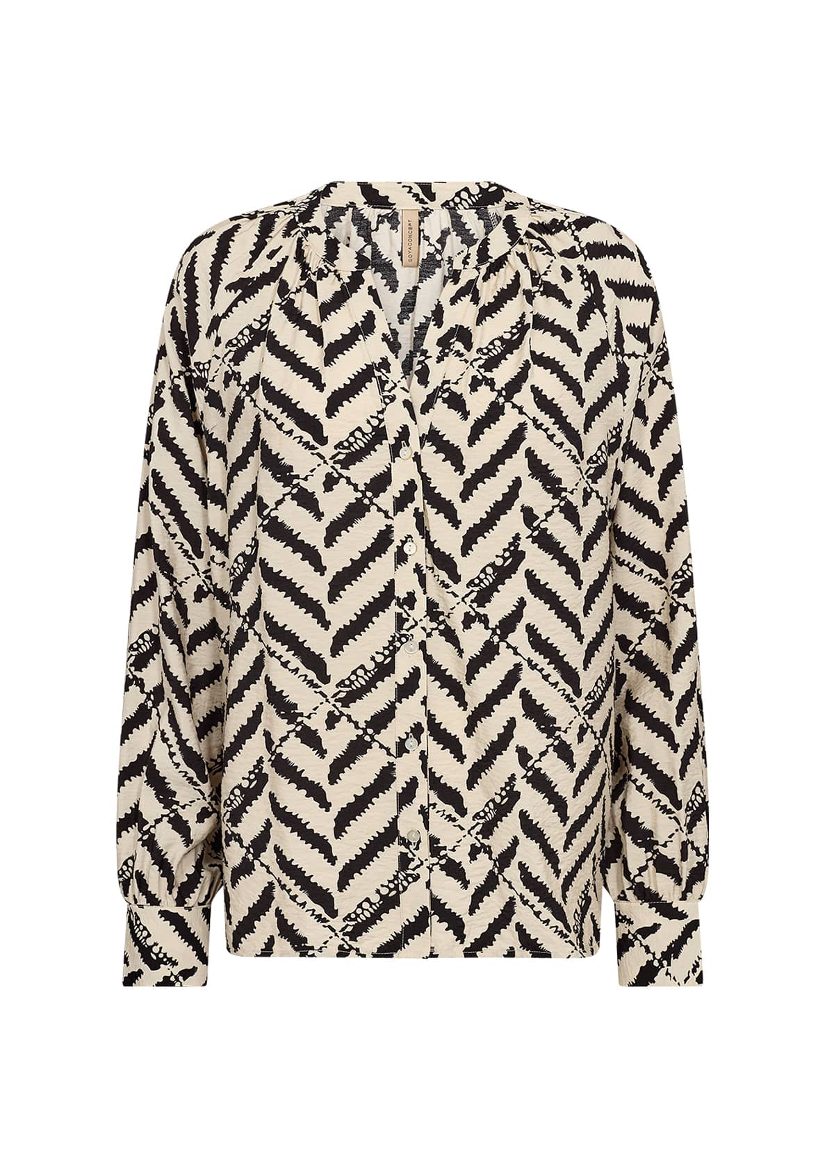 Blouse van Soya Concept in een all-over dessin met lange raglanmouwen, V-hals en een knoopsluiting. Materiaal: Eco viscose 85%| nylon 15%
