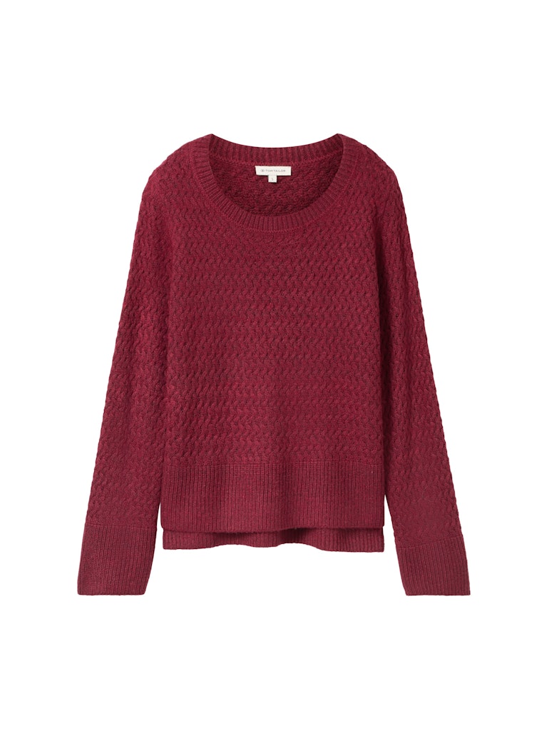 Trui van Tom Tailor in een structuur dessin met lange mouwen, ronde hals, ribgebreide boorden, split in de zijnaden en een iets langere achterzijde.