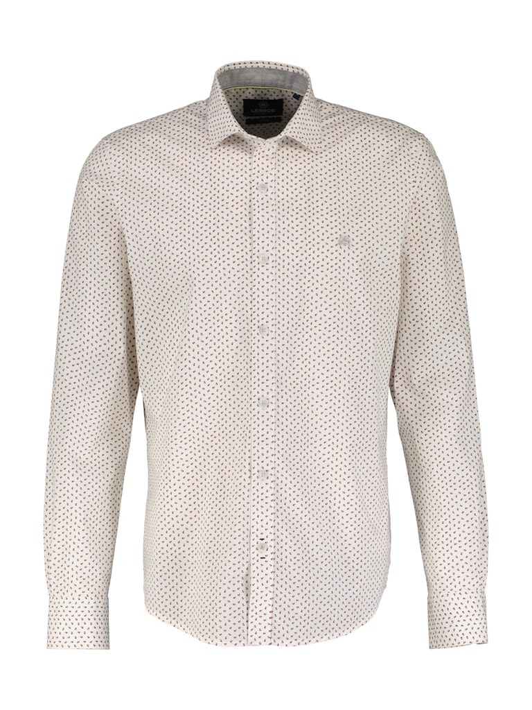 Poplin overhemd van Lerros in een all-over dessin met lange mouwen, sportieve haaienkraag, regular-fit en een geborduurd logo op de linkerborst.