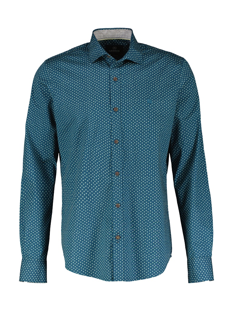 Poplin overhemd van Lerros in een all-over dessin met lange mouwen, sportieve haaienkraag, regular-fit en een geborduurd logo op de linkerborst. Materiaal: Katoen 97%| elastan 3%