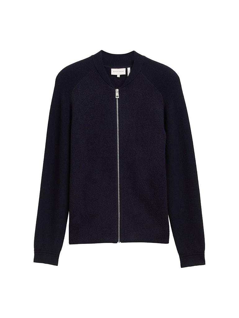 Vest van Tom Tailor met lange mouwen, ritssluiting, opstaande kraag, ribdetails op de schouders en ribgebreide boorden. Materiaal: Acryl 60%| polyamide 30%| wol 8%| elastan 2%