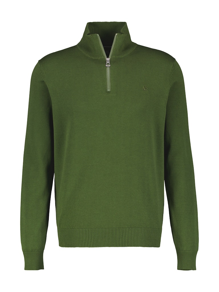 Trui van Lerros met lange mouwen, opstaande kraag voorzien van korte ritssluiting, geborduurd logo op de linkerborst en ribgebreide boorden.
