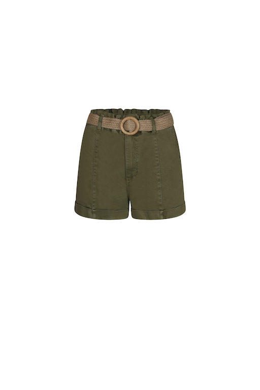 Short van Elvira met twee steekzakken, siernaden, brede elastische tailleband, knoop en ritssluiting en een ceintuur in de taille.