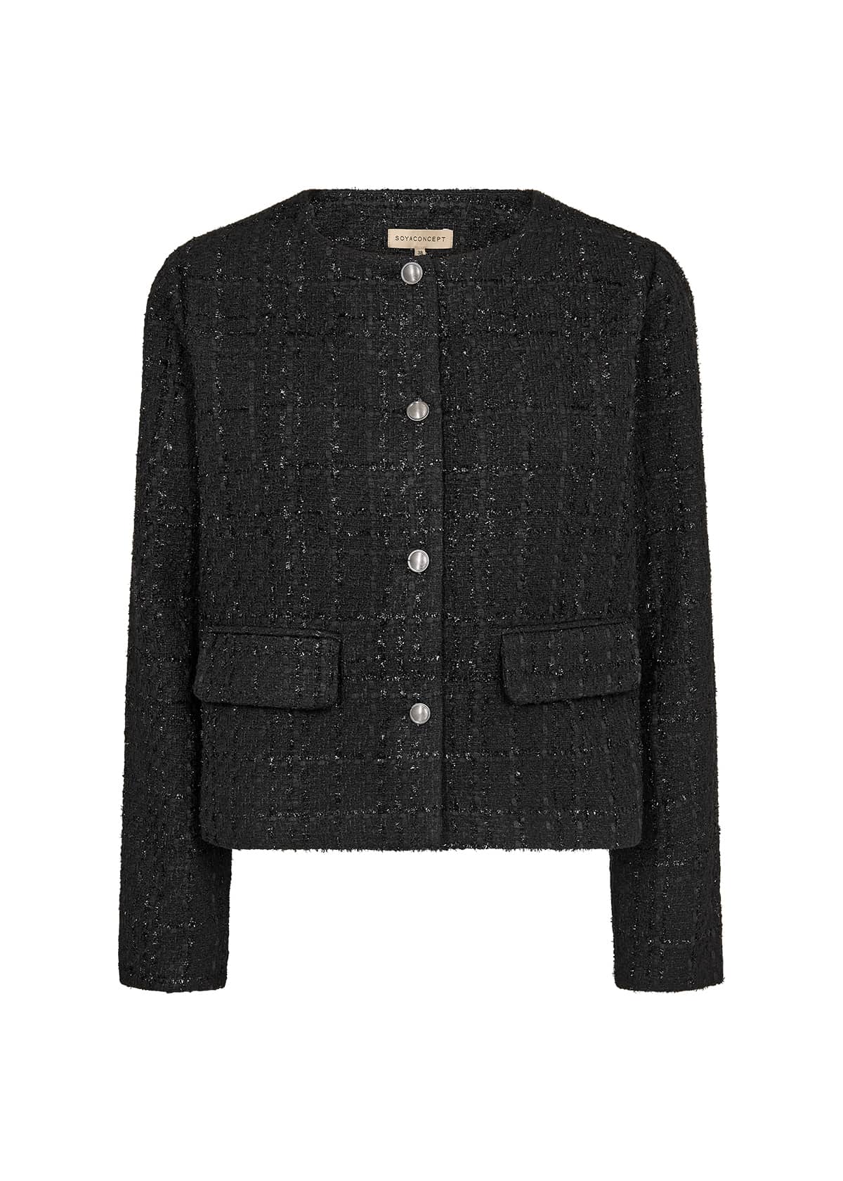 Kort vest van Soya Concept in een all-over dessin met lange mouwen, ronde hals, twee klepzakken en een knoopsluiting. Materiaal: Polyester 100%