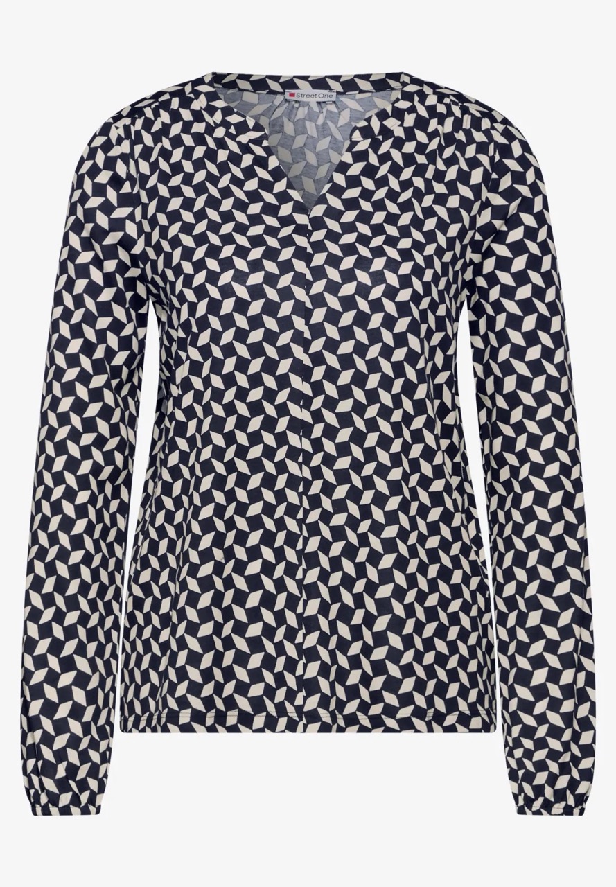 Jersey shirt van Street One in een all-over dessin met lange mouwen en een ronde hals voorzien van V-inkeping.